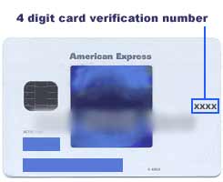 The American Express verification number is a 4-digit number printed on the front of your card. It appears after and to the right of your card number as such: |